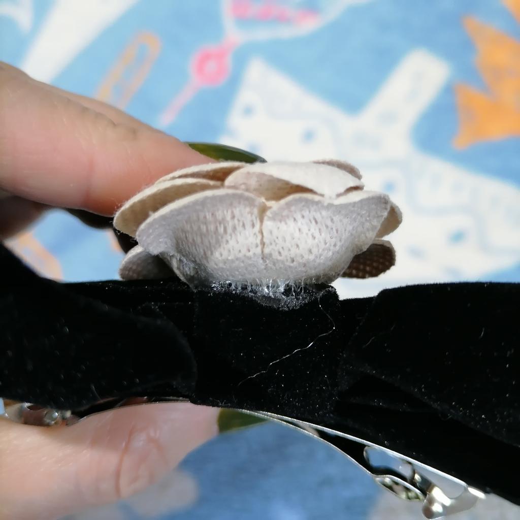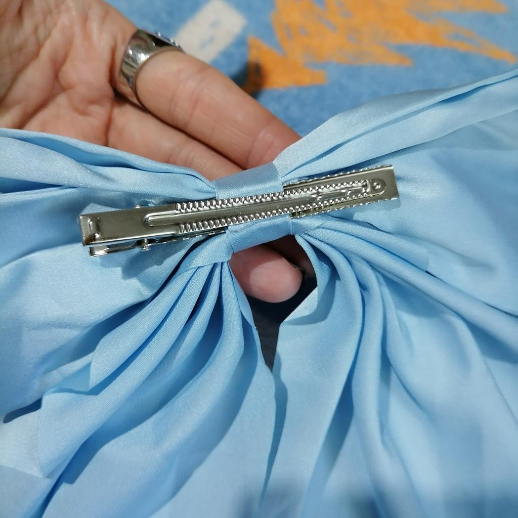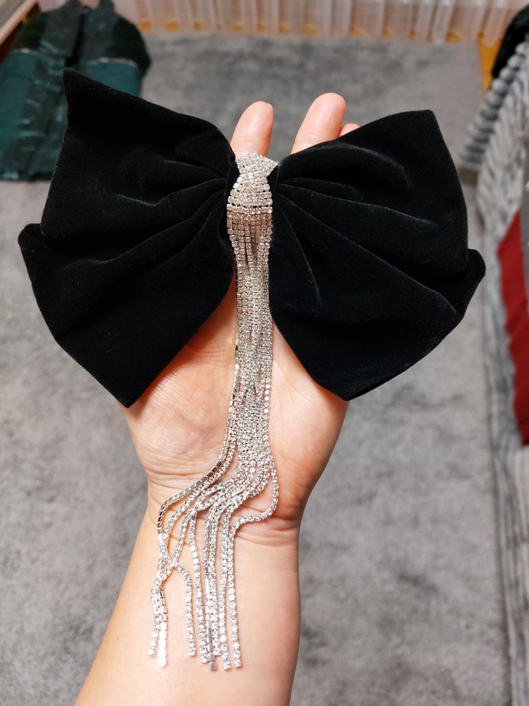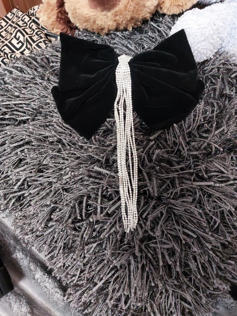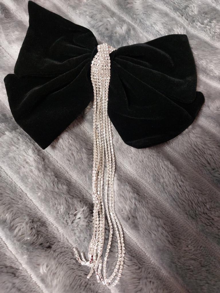 Die Haarnadel sieht sehr schön aus, Metall, langlebige Automatik, ein schwarzer Samtschmetterling, der seine Form behält, verziert mit einem Anhänger mit kleinen Steinen. Alles ist sehr ordentlich gemacht, die Steine funkeln im Licht, also eine sehr schöne Haarnadel. Ich empfehle.