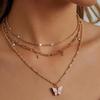 1 Stück Gold-Halskette für Damen, minimalistischer Stil, süßer rosa Acryl-Schmetterlings-Serie, mehrschichtiger Seitenketten-Schmuck