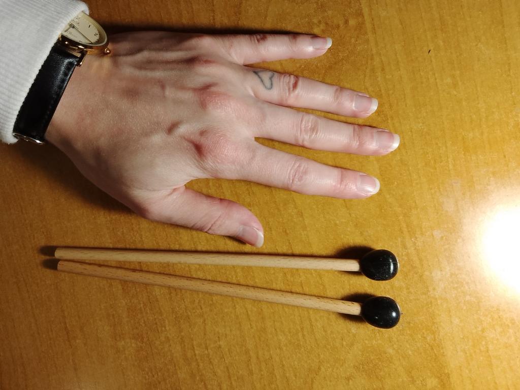 Gute Holzstäbchen mit Gummispitze für ein Mini-Glukophon.