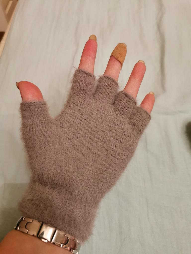 Hochwertig, aber zu klein, und aus irgendeinem Grund war der Daumen beleidigt. Und ihm ist auch kalt. Danke Jum.