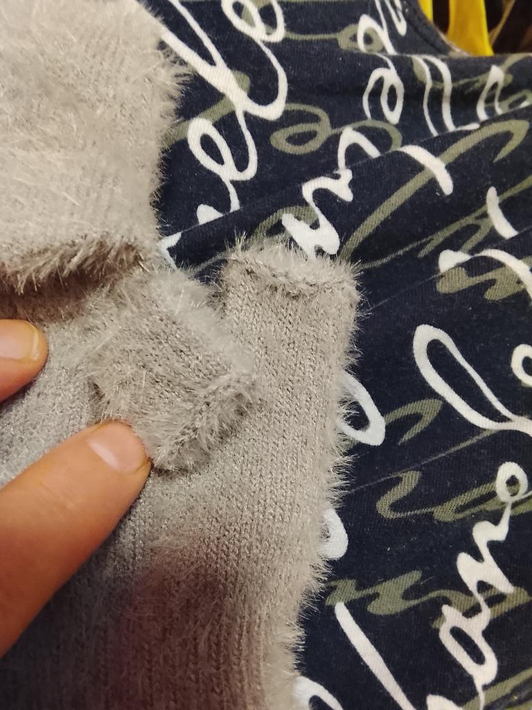 Das Material sieht ganz verfilzt aus, also nicht so schön wie in der Anzeige. Wirklich schade. Und die Hände bleiben damit kalt.