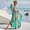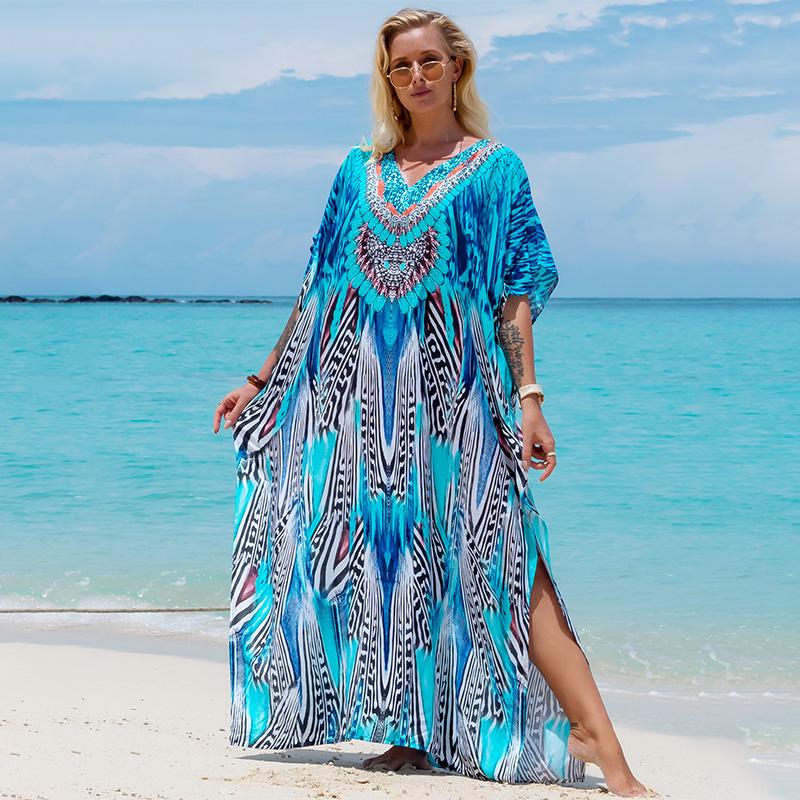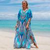 EDOLYNSA Bedruckte türkische Robe mit Fledermausärmeln, Sommer-Tunika, Plus-Size-Bademode, Cover-Up für Damen-Bademode, blaue Kaftan-Kleider, Q1415