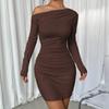 Einfarbiges, rückenfreies, angesagtes MIDI-Kleid mit schräger Schulterpartie für Damen