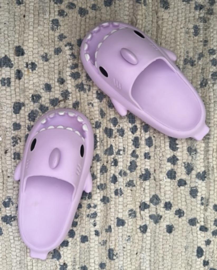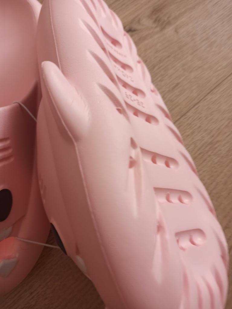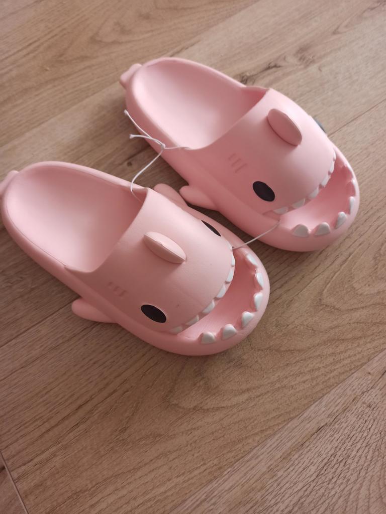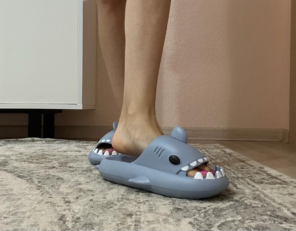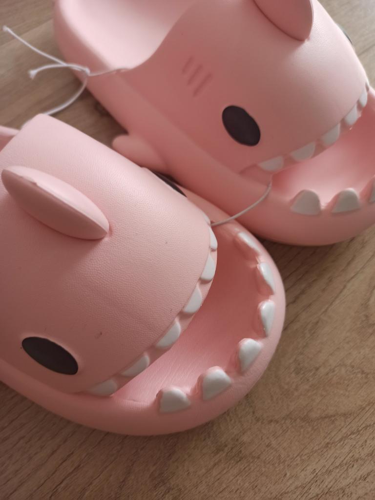 * Hausschuhe in Hai - Optik 🦈 * 💥𝗟𝗶𝗲𝗳𝗲𝗿𝘇𝗲𝗶𝘁 11 Tage 💥𝗟𝗶𝗲𝗳𝗲𝗿𝘂𝗺𝗳𝗮𝗻𝗴 Im Lieferumfang enthalten ein Paar Hausschuhe in entsprechender Farbe und Größe. Verfügbar sind sie in 7 verschiedenen Farben in den Größen 36-45 . Ich habe Hausschuhe in Größe 42 bis 43 in grau bestellt. Ich habe normalerweise Schuhgröße 40, ich habe noch ein bisschen Luft in den Schuhen. Habe mich nämlich an der Zentimeterangabe des Herstellers orientiert. Ich glaube 1 Nummer kleiner hätte auch gut gepasst. Ich würde sagen, dass die Passform eher für ein breites Fußbett geeignet ist. Nicht für schmale Füße. 💥𝗤𝘂𝗮𝗹𝗶𝘁ä𝘁 Die Schuhe sind sehr bequem. Wir haben einen angenehmen weiches Fußbett, was gut nachgibt. Es besteht aus einer Art gummi-/schaumstoff- Gemisch, denke ich. Die Schuhe drücken nicht... Sie sind optimal als Badelatschen oder Hausschuhe geeignet Sie riechen nicht unangenehm nach Chemie. Besonders gut gefällt mir die Hai- Optik. 🦈 Zur Materialzusammensetzung : Unbekannt 💥𝗙𝗮𝘇𝗶𝘁 Sehr süße Hausschuhe in Hai- Optik, die sich perfekt als Badelatschen eignen... man kann seine Originalschuhgröße bestellen. 👌 Die Schuhe sind eher für ein breites Fußbett geeignet. ‼️ Kleiner Nachteil ist, dass durch die seitlichen flossen man eventuell stolpern könnte, weil die Badelatschen dadurch sehr breit werden am Fuß.