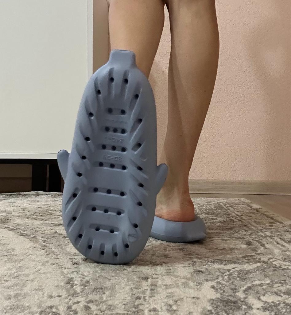 Hausschuhe 🦈 Als ich diese Sneaker zum ersten Mal bekam, war ich sehr glücklich, weil sie außergewöhnlich sind und Spaß machen) Am ersten Tag habe ich sie gut getragen, am nächsten ist die Flosse abgefallen 😕 und dann am zweiten. Und dann habe ich mir eine riesige Hornhaut eingerieben (weil es ein großer Anstieg war) Natürlich habe ich sie einfach weggeworfen... sehr enttäuscht. Mir passte die Größe 24,5, ich habe 40/41 genommen, daher trage ich normalerweise 39/40