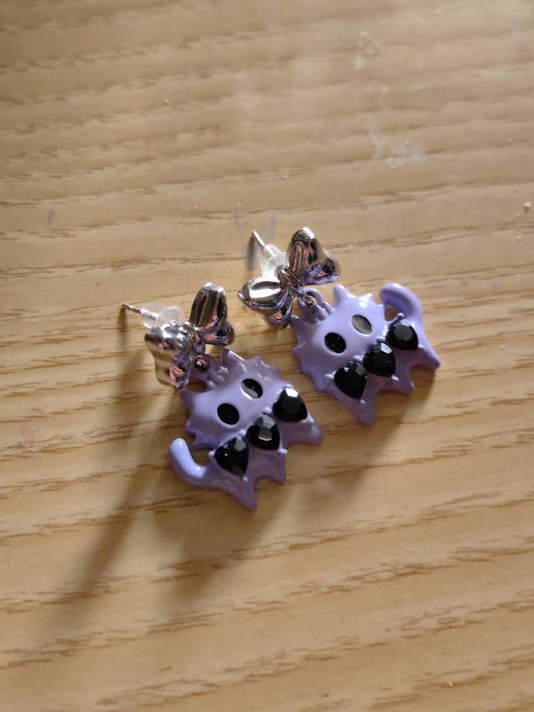 Pinkdudu Mode Lila Gentleman Katze Schwarz Strass Ohrringe Niedlichen Bogen 2 Farbe Tier Ohrring für Frauen Schmuck PD1394