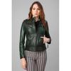 Damenmäntel mit Reißverschluss aus echtem Leder, grün gefärbte Damenmäntel