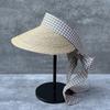 Großer Sonnenstrohhut mit breiter Krempe, flacher Oberseite, modischer Sommerhut mit langem Band, für Damen, Urlaub, Vintage-Strand-Schirmmütze
