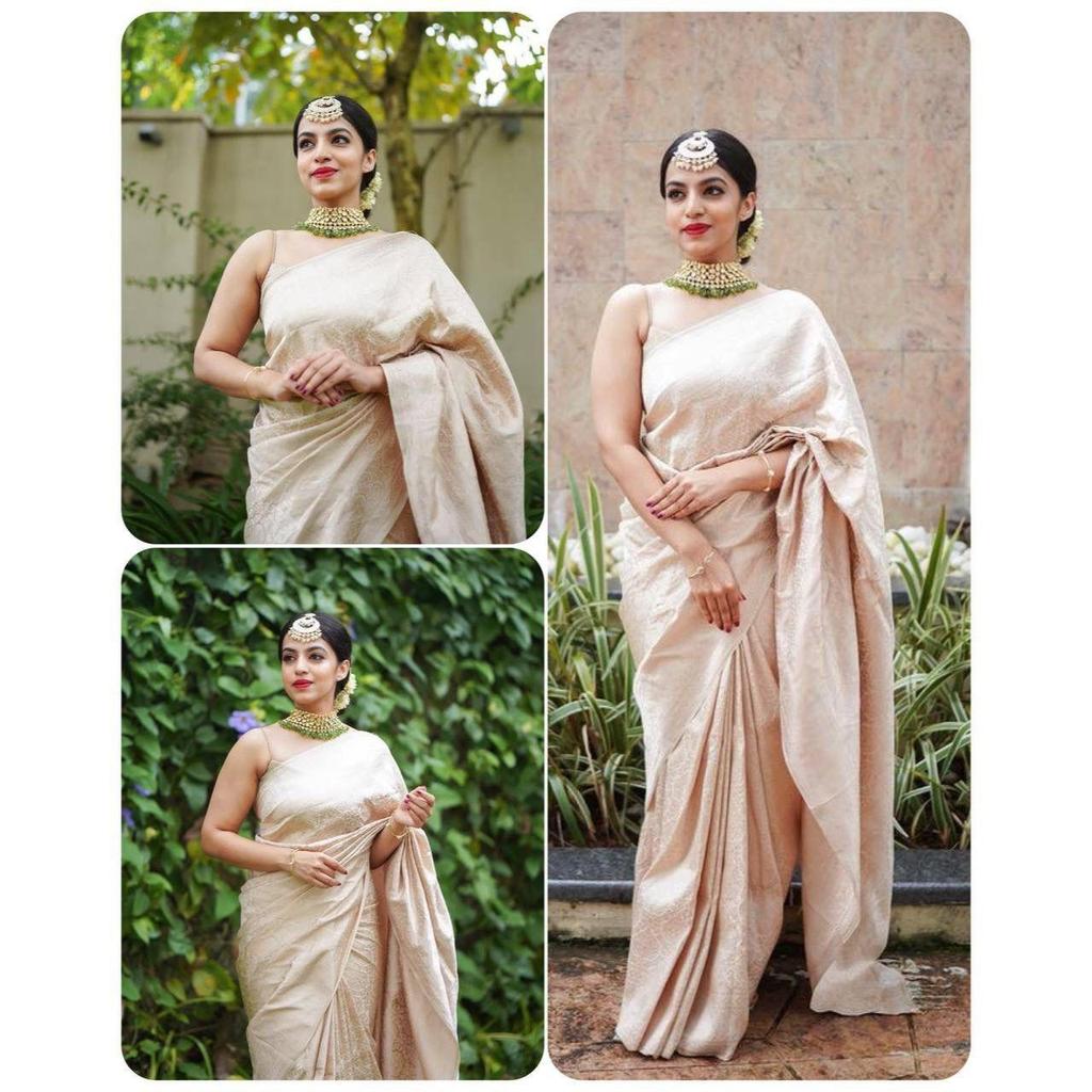 Dieser wunderschöne Saree ist elegant mit wunderschönem solidem Jacquard-Gewebe verziert, das dem Outfit einen perfekten Look verleiht.