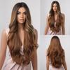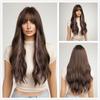 ALAN EATON Ombre Braun-Blond-Mischperücken mit Pony, lang, lockig, gewellt, Kunsthaarperücken für Frauen, hitzebeständige Faserperücken, für den Alltag, Partys, Cosplay