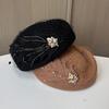 Achteckige Kappe für Damen, verstellbar, für Mädchen, Retro, Schirmmütze, Baskenmütze, Leder, einfarbig, für Winter und Herbst
