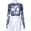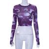 Frauen Mesh Langarm T-shirt Tie-dye Oansatz Unregelmäßigen Split Pullover Damen Beiläufige Dünne T-shirt Top