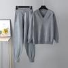 Zweiteilige Damen-Strick-Sportanzüge mit V-Ausschnitt, Damen-Pullover, Kordelzug, Haremshose, Jogginghose, Pullover-Pullover-Set, Strick-Outwear