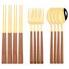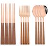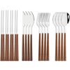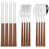 12/16Pcs Geschirr Set Nachahmung Holz Griff Besteck Set Stäbchen Messer Gabel Löffel Geschirr Set Koreanische Besteck