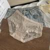 Französische Satin-Spitzen-Unterhose für Damen, mittlere Taille, reines Verlangen, schwarz, sexy Spitze, leicht durchgehöhlte Mädchen-Slips