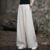 Johnature Frauen Vintage Ramie Breite Bein Hosen Einfarbig Elastische Taille Hosen Taschen Beiläufige Lange Hosen Herbst Kleidung