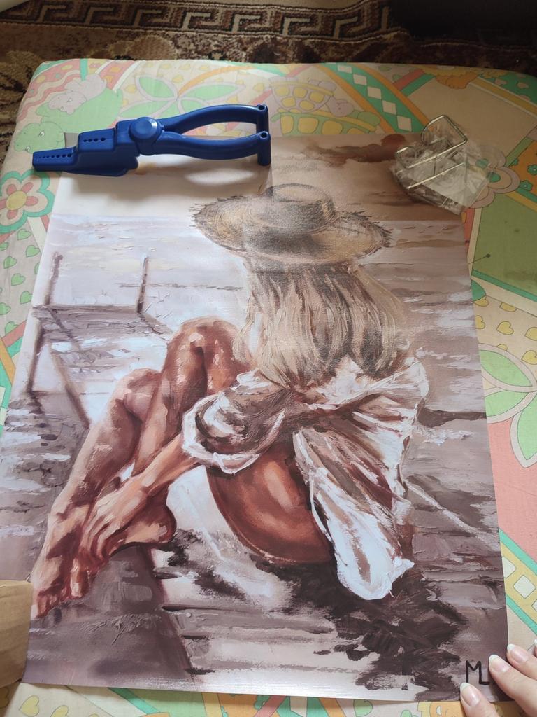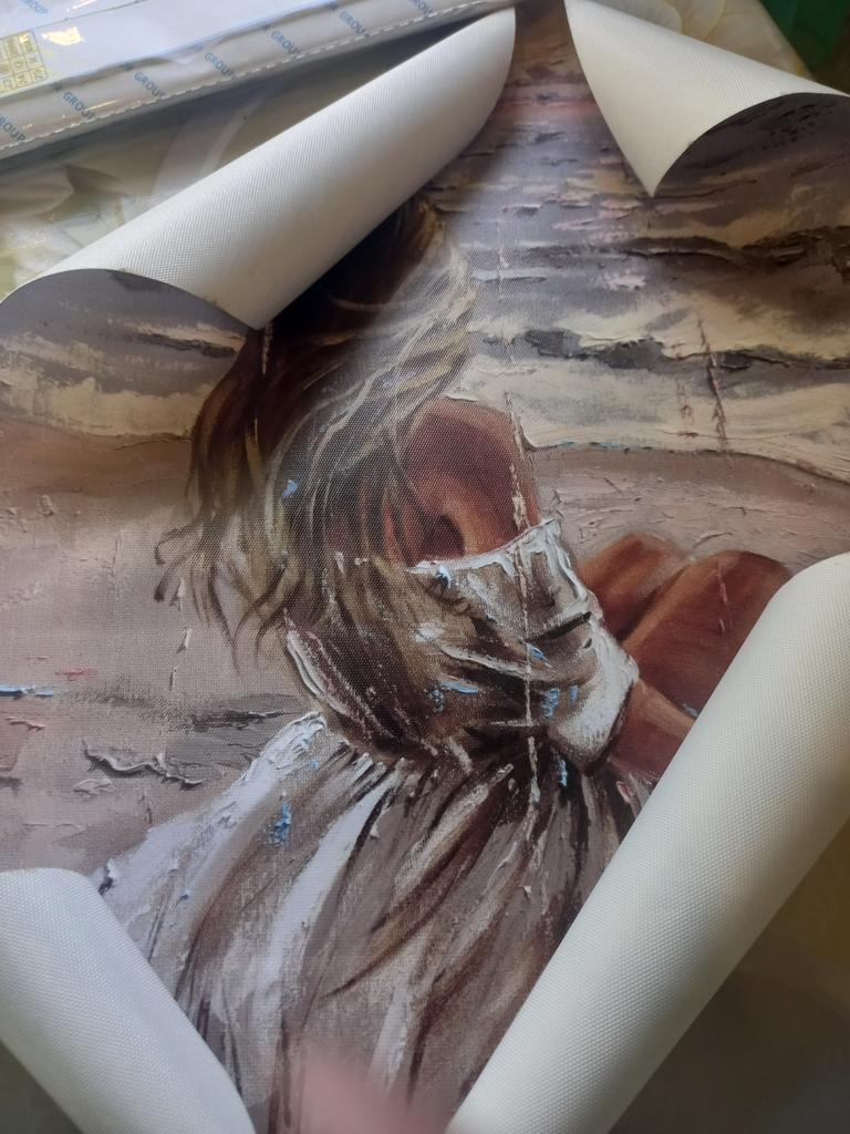 Es ist nur eine Leinwand mit einem fertigen Muster. Ich war auf der Suche nach einem Produkt wie einem Malen nach Zahlen mit Farben, am Ende kam dieses Bild, schade, dass ich nicht die vollständige Beschreibung gelesen habe