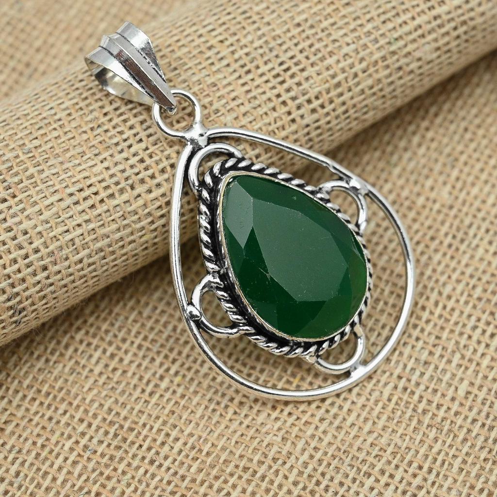 Facettierter grüner Onyx-Edelstein, 925er-Sterlingsilber, handgefertigter, ausgefallener Anhänger-Schmuck