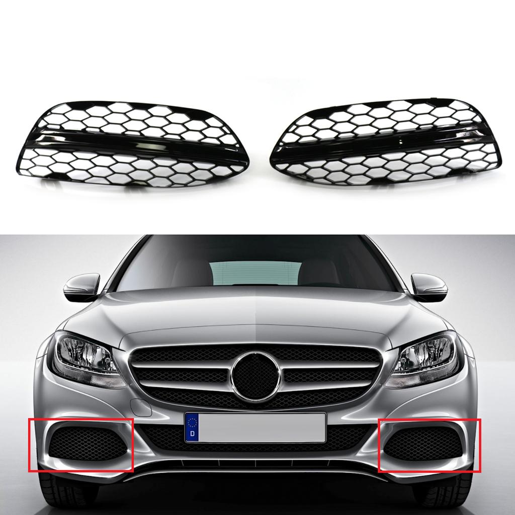 Sport Hex Mesh Honeycomb Black Car Front Fog Lamp Frame Decorative Grille For Mercedes Benz C-Class W205 2058851223