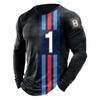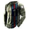 Vintage Digital bedrucktes gestreiftes T-Shirt, Street Fashion Motorrad Herren Langarm-Tops T-Shirt.