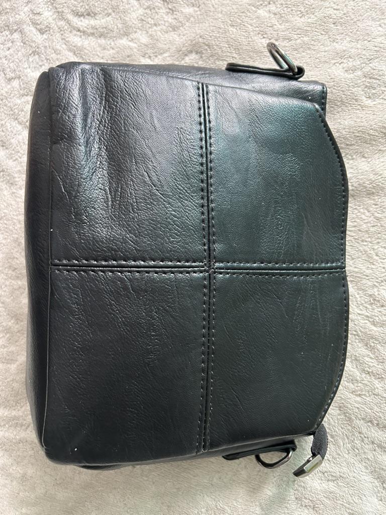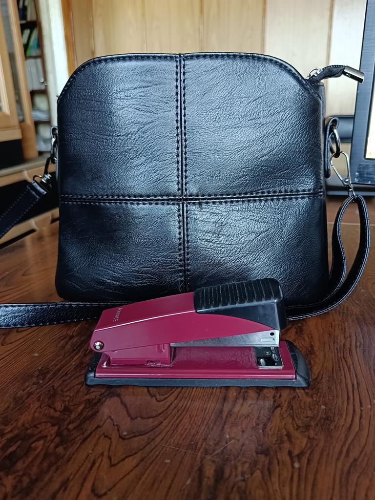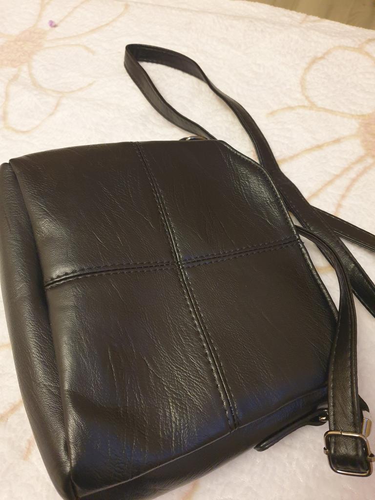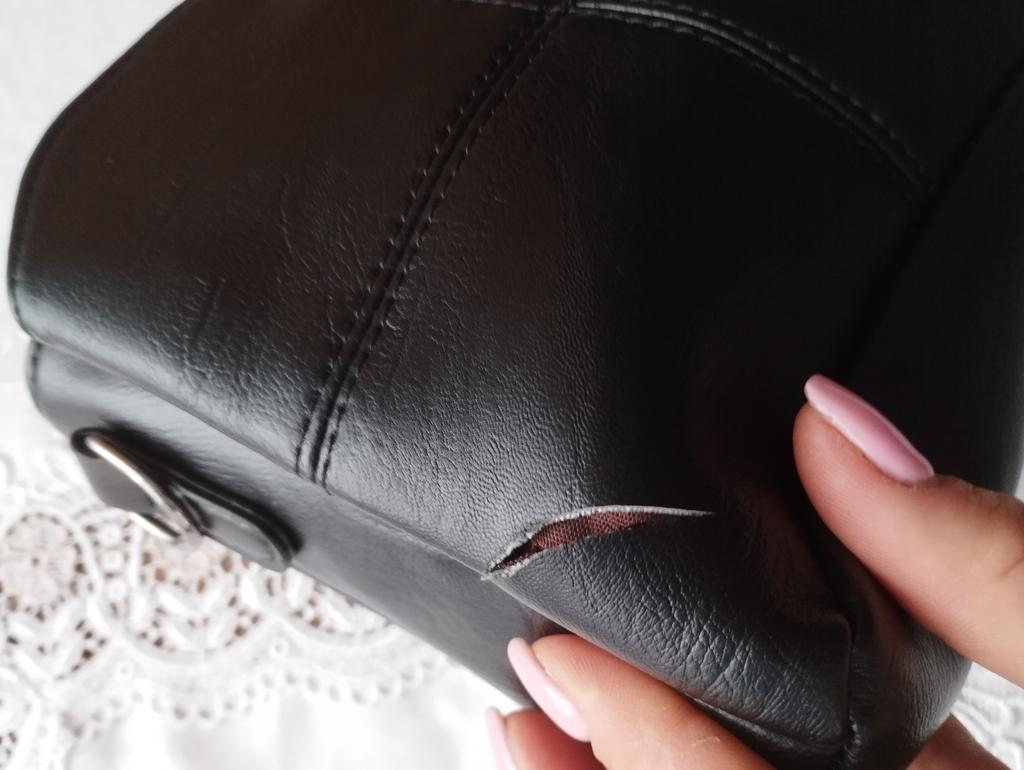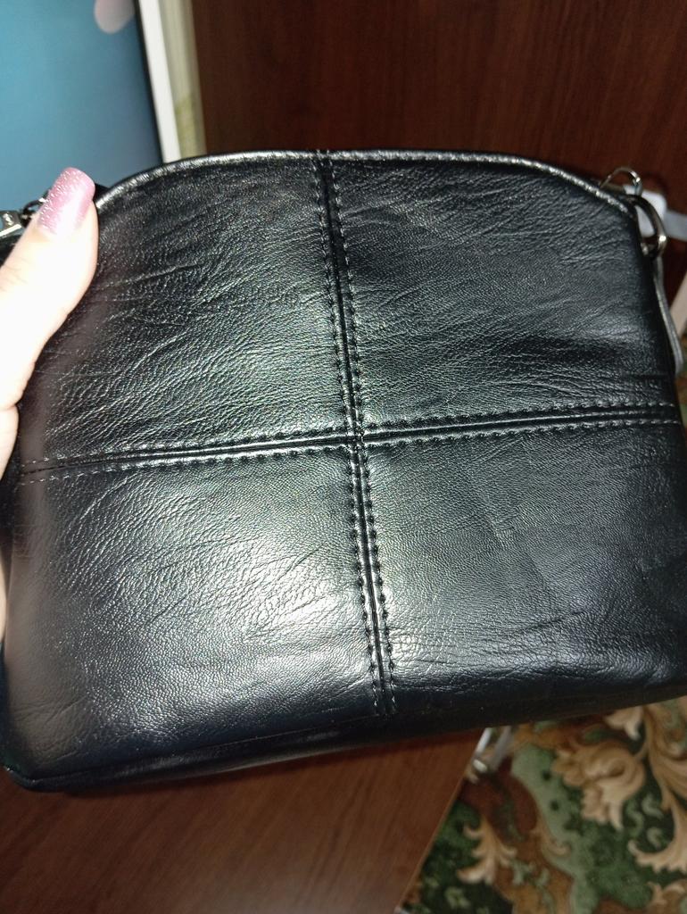 Die Tasche ist klein und kompakt. Die Tasche ist gut genäht, es gibt zwei kleine Nachteile: An einem der Abschnitte ist die Niete schief genäht (auf verschiedenen Ebenen) und die Tasche riecht nicht stark. Aber mit der Zeit wird der Geruch verschwinden.
