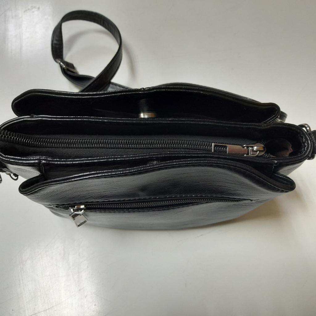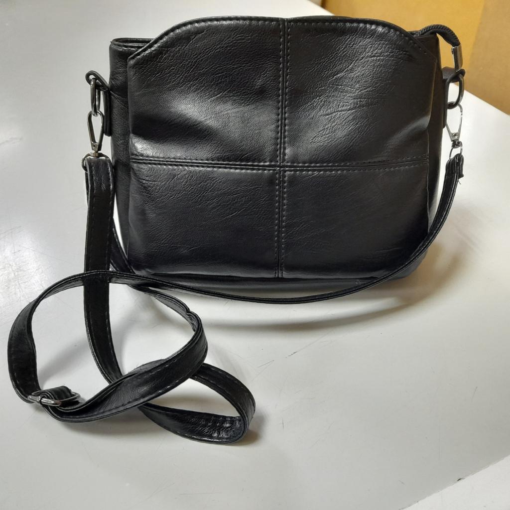 Kleine schwarze Tasche mit vielen Fächern (3 Fächer + 3 Taschen)