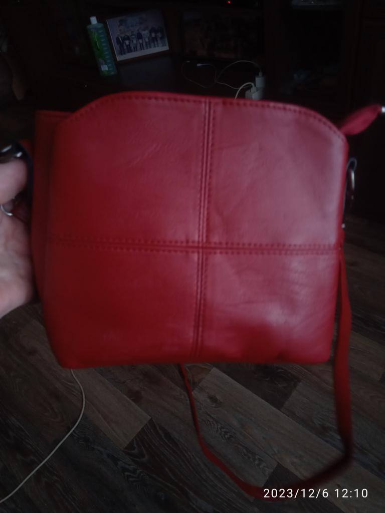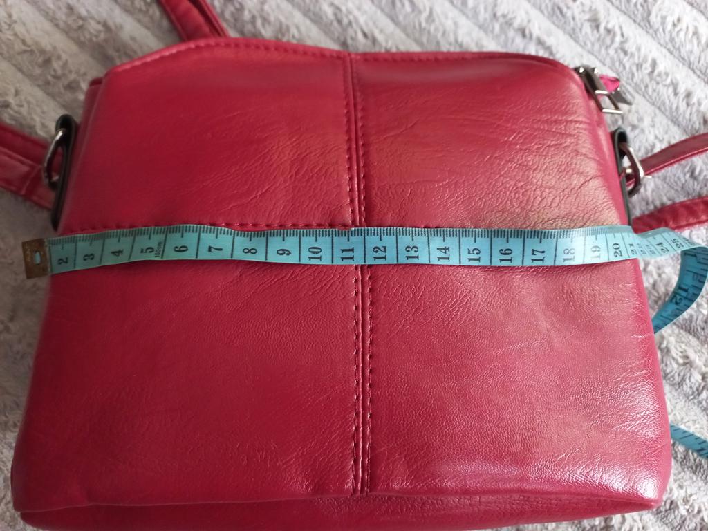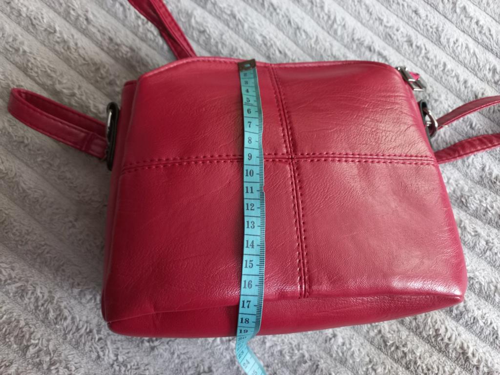 Eine schöne Handtasche, sauber genäht, die Nähte sind gleichmäßig, die Fäden stehen nicht ab, auch in der Mitte gibt es nichts zu bemängeln. Aber sehr klein. Auf dem Foto im Laden sind die Modelle vermutlich sehr klein oder die Taschen größer. Ich habe die Schiene gemessen und die angegebenen 23 cm sind nicht da, das Maximum in gestreckter Form beträgt 21 cm. Es ist immer noch sehr leicht, als ob es aus Papier wäre, es verrutscht wahrscheinlich schnell, aber für diesen Preis ist es normal. Die Farbe ist nicht so scharlachrot, sondern eher burgunderrot. Zubehör von guter Qualität. Mit der Verpackung war ich sehr zufrieden. In der Mitte befand sich ein mit Luft aufgeblasener Beutel, der verhinderte, dass der Beutel unterwegs zerknitterte. Im Allgemeinen eine sehr schöne, schöne Handtasche, ich empfehle sie.