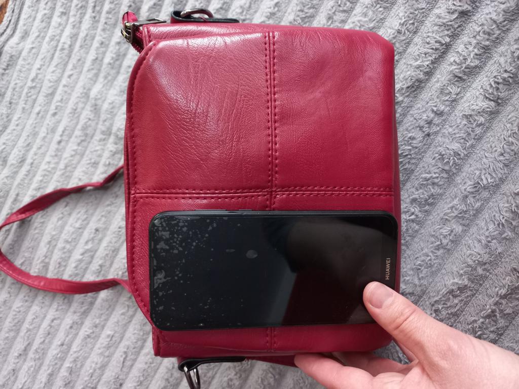 Eine sehr hübsche Handtasche. Telefon, Schlüssel, Tablets, Geldbörse – alles passt hinein.
