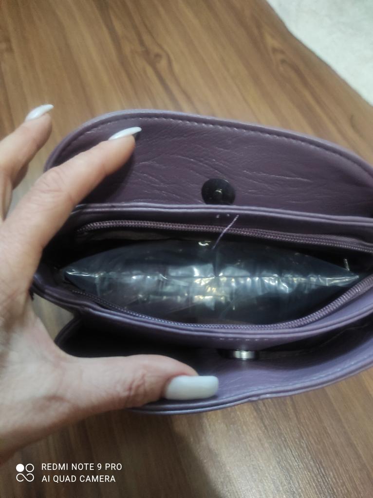Ich habe mich in die Handtasche verliebt. Wunderschöne Lavendelfarbe. Weich Klein und sehr geräumig. Die Schlösser funktionieren. Qualitativ genäht. Es hat keinen Geruch. Da sich darin ein Paket befand, war die Handtasche nicht zerknittert. Danke Jum. Gut gemacht. Der Verkäufer hat ein Geschenk in die Tasche gesteckt - ein Gummiband für die Haare. Sehr schön . Ich habe es nicht sofort gemerkt.