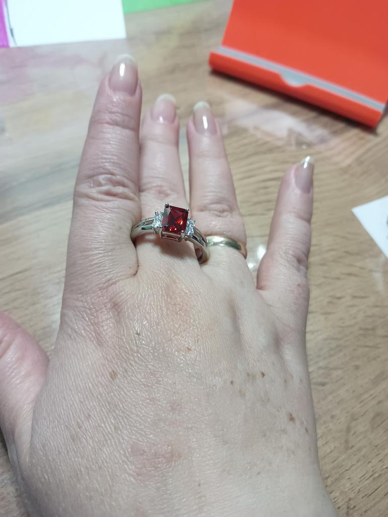 1 Stück silbrige Farbe Frauen Rechteck geschnitten roter Stein CZ Kristall Klaue Ring Prinzessin Schmuck Geschenk