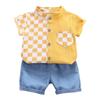 Baby Jungen Kleidung Sommer Baumwolle Kariertes Hemd Jungen Anzug Hemd + Denim Shorts Jungen Kleidung Casual Zwei Stück Set