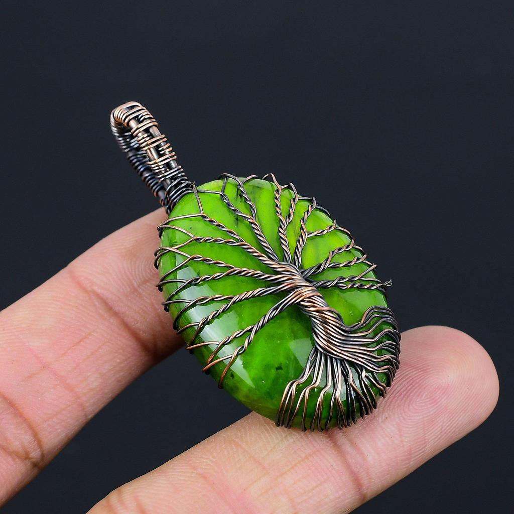 Baum des Lebens, grüner Flash-Labradorit, Edelstein, reiner Kupferdraht, umwickelt, handgefertigter Anhänger-Schmuck
