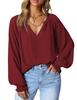 Herbst V-ausschnitt Plissee Blusen Mode Lässig Lose Lange Hülse Frauen Einfache Chiffon Shirts Und Tops Damen Feste Kleidung 28612
