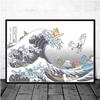 Massivholzrahmen Kreative Pokemon Japanische Anime Pikachu Poster Die Große Welle Leinwand Malerei Wohnzimmer Dekor Wandkunst Drucke Wandbild Pictur