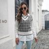 GMXIA Damenmode Casual Plaid Print Herbst Winter ärmellose V-Ausschnitt Strickwesten