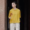Johnature Frauen Pullover Leinen T-Shirts Einfarbig drehen-unten Farbe Kurzarm Sommer Lose Beiläufige Weibliche T-Shirts