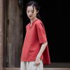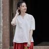 Johnature Damen Vintage T-Shirts aus Baumwolle und Leinen, einfarbig, Sommer-T-Shirts, V-Ausschnitt, kurzärmelig
