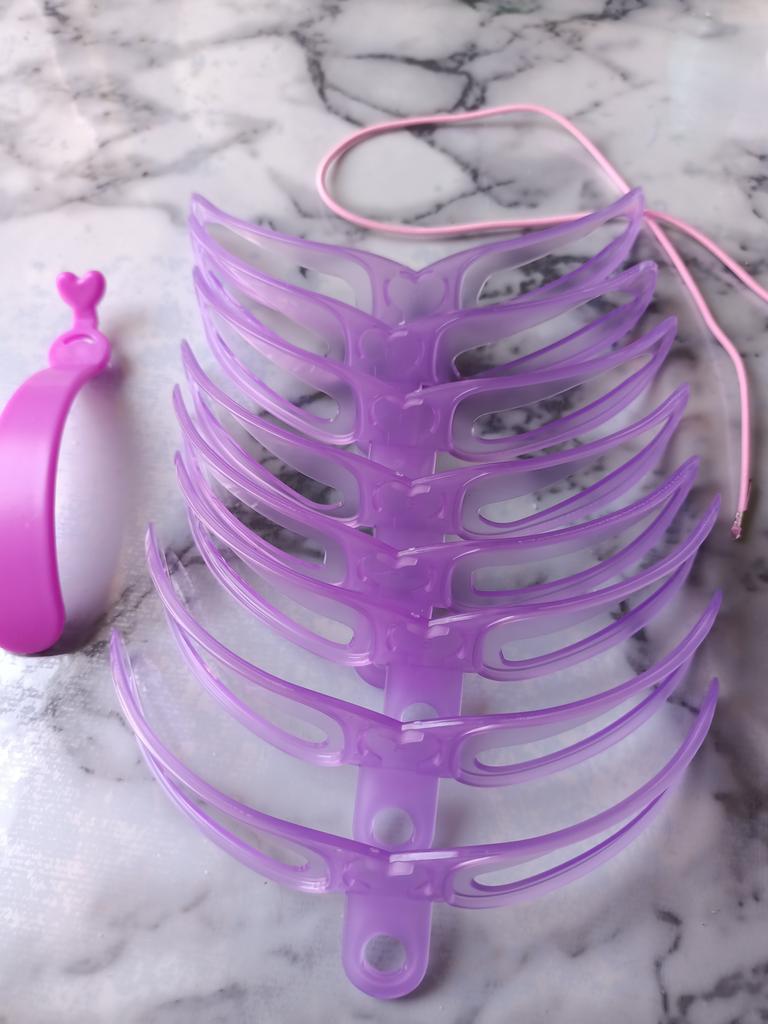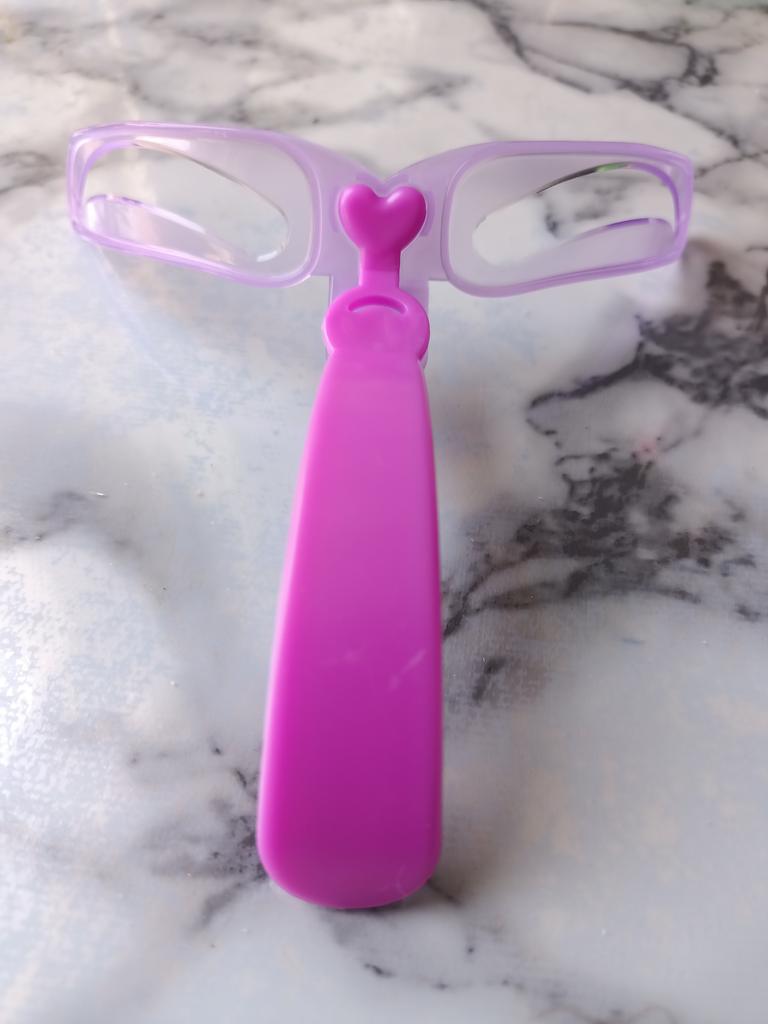 Interessante Konstruktion! Ein Gummiband für den Hinterkopf und ein Haltegriff für die Vorderseite sind im Lieferumfang enthalten. Praktisch zum Andrücken von Schablonen.