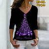 Streetwear-Sweatshirt für Damen, Weihnachtsbaum, glitzernde Malerei, grafisch gemustert, 3/4-Ärmel, V-Ausschnitt, T-Shirt, T-Shirt, XS-8XL