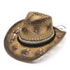 Retro Damen Herren Sommer Sonne Stroh Cowboy Western Cowgirl Hut aushöhlen Strand breite Krempe Rettungsschwimmer Hüte