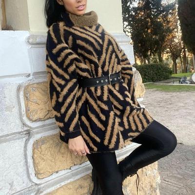 Koreanischer warmer Pullover mit Leopardenmuster, Oberbekleidung für Herbst und Winter, lässig, locker, weich, klebrig, mittellanger Pullover, Pullover für Damen