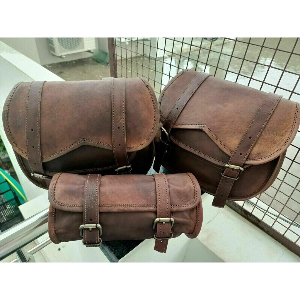 2 Seitentaschen, braunes Leder, Motorrad-Seitentasche, Satteltaschen, Sattel 2 Tasche
