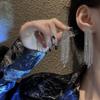 Silber Nadel Dreieck Intarsien Strass Quaste Ohrringe Mode Helle Elegante Temperament Damen Licht Luxus Lange Ohrringe YSL