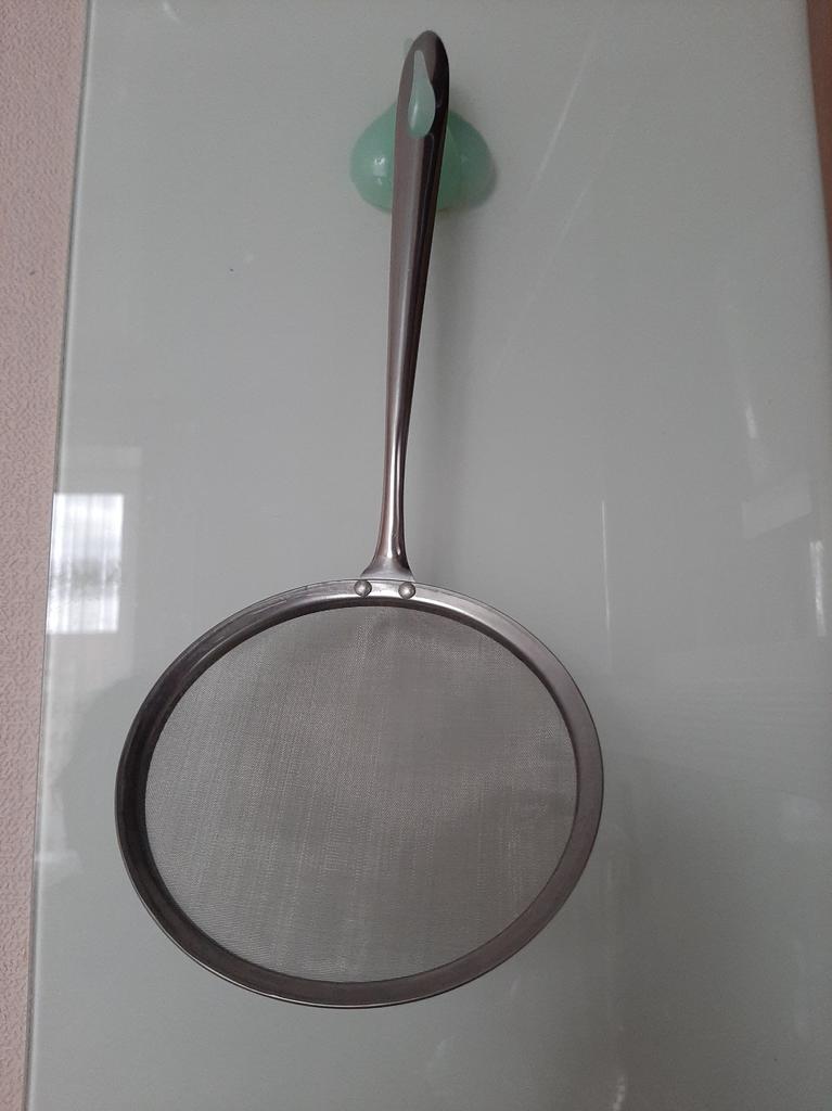 Das Metall ist sehr dünn. Geeignet zum Entfernen von Schaum aus Brühe.