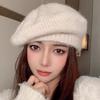 Entenzungen-Baskenmütze, weiblich, Winter, wilde Malermütze, Kaninchenfell, gestrickt, warm, achteckige Wollmütze