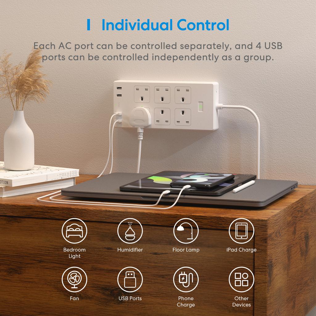 Homekit Smart Überspannungsschutz WLAN-Steckdosenleiste UK-Stecker mit 6 Steckdosen, 4 USB-Steckdosenverlängerung, unterstützt Alexa Google