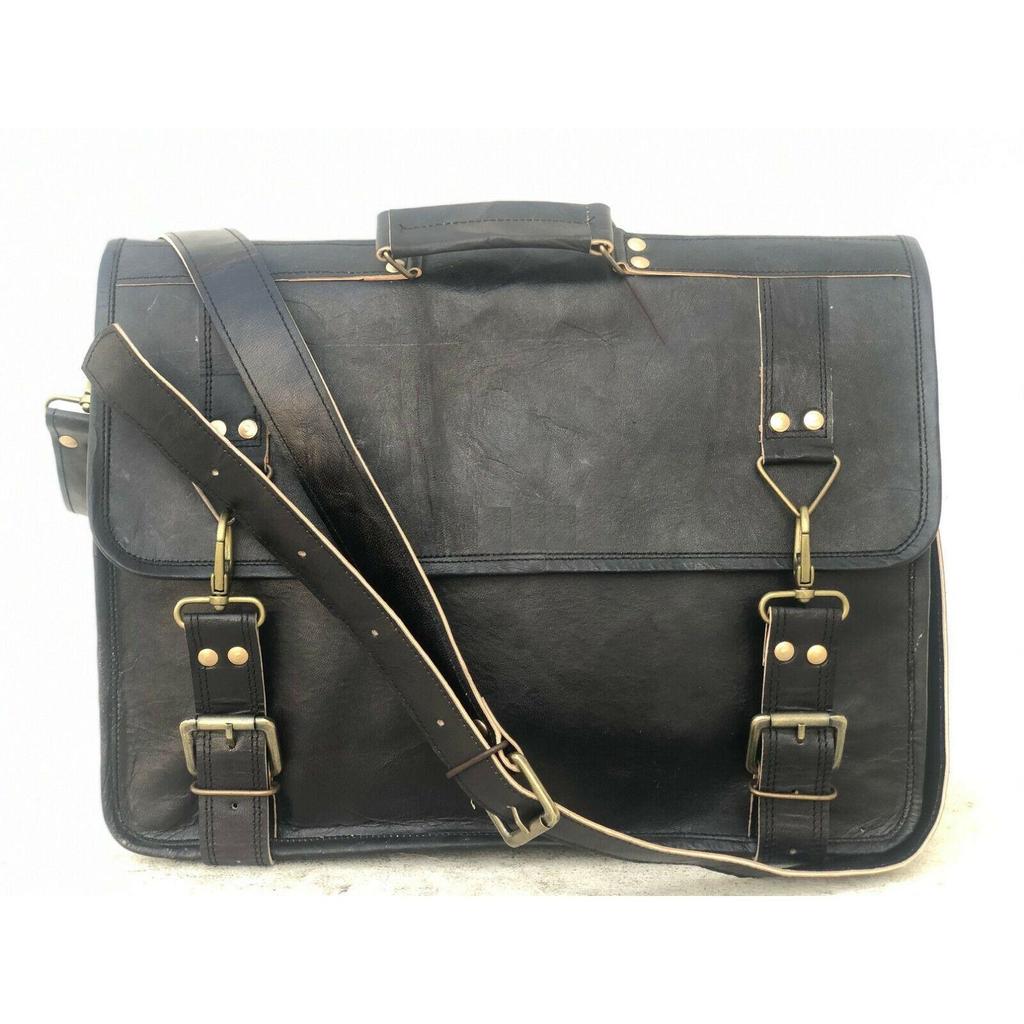 Schwarzes Leder Messenger Herren Schulter Laptop Satchel Aktentasche Vintage Tasche