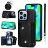 Luxus Leder Karten Portemonnaie Wristlet Lanyard Handyhülle für iPhone 15 14 13 12 11 Pro Max XS MAX XR 8 für Samsung S23 S22 S21 Ultra Plus A12 A52 Huawei