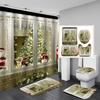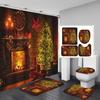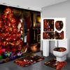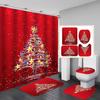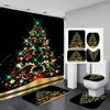 4-teiliges Duschvorhang-Set mit Weihnachts- und Weihnachtsbaum-Serie für Badezimmer, rutschfeste Badezimmerteppiche, Deckel, Toilettendeckel, Badematte