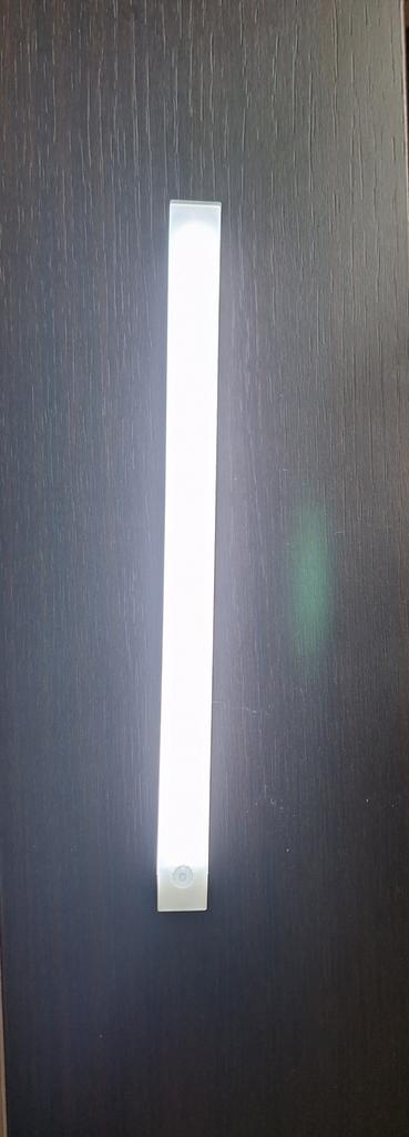 Die Lampe ist hell, 30 cm lang und lässt sich mit Magneten und doppelseitigem Klebeband befestigen. Der Bewegungssensor funktioniert gut, ich habe nicht berücksichtigt, dass ich eine Katze habe, also habe ich ihn oben angebracht. Es verfügt über 3 Modi und erfüllt seine Funktionen nachts zu 100 %.